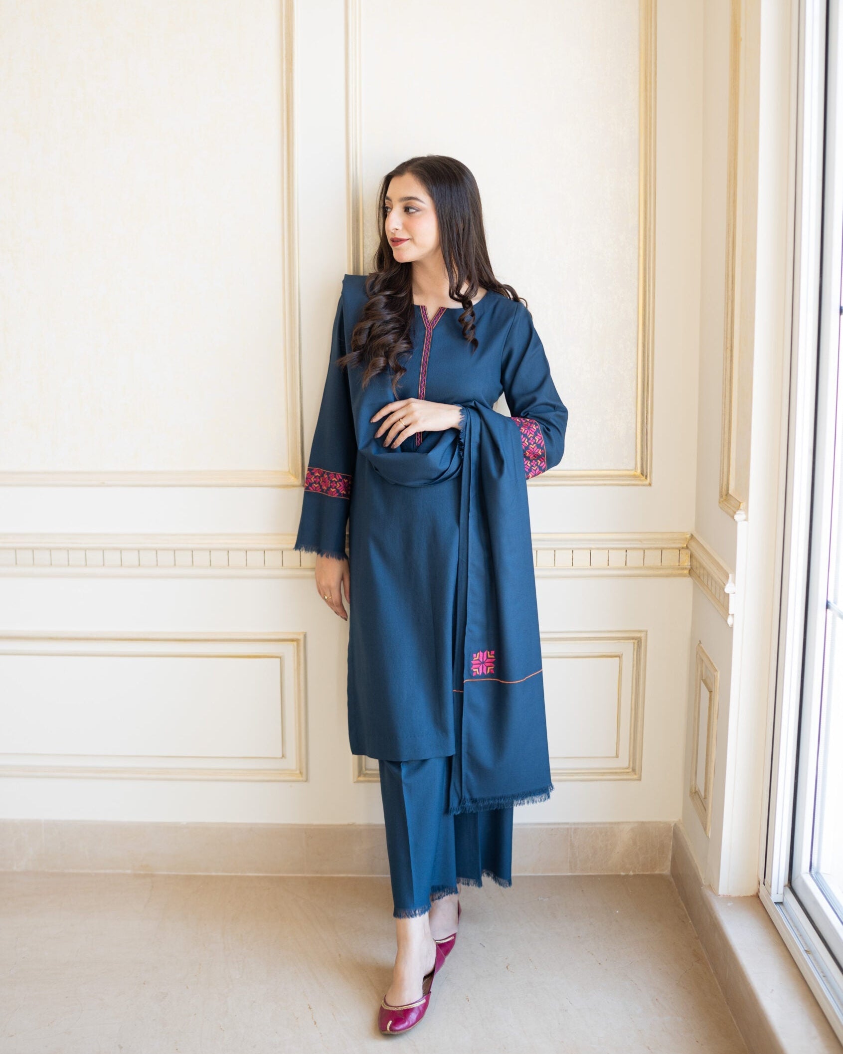 Paired with a solid culotte and stunning Pashmina Embroidered Shawl.