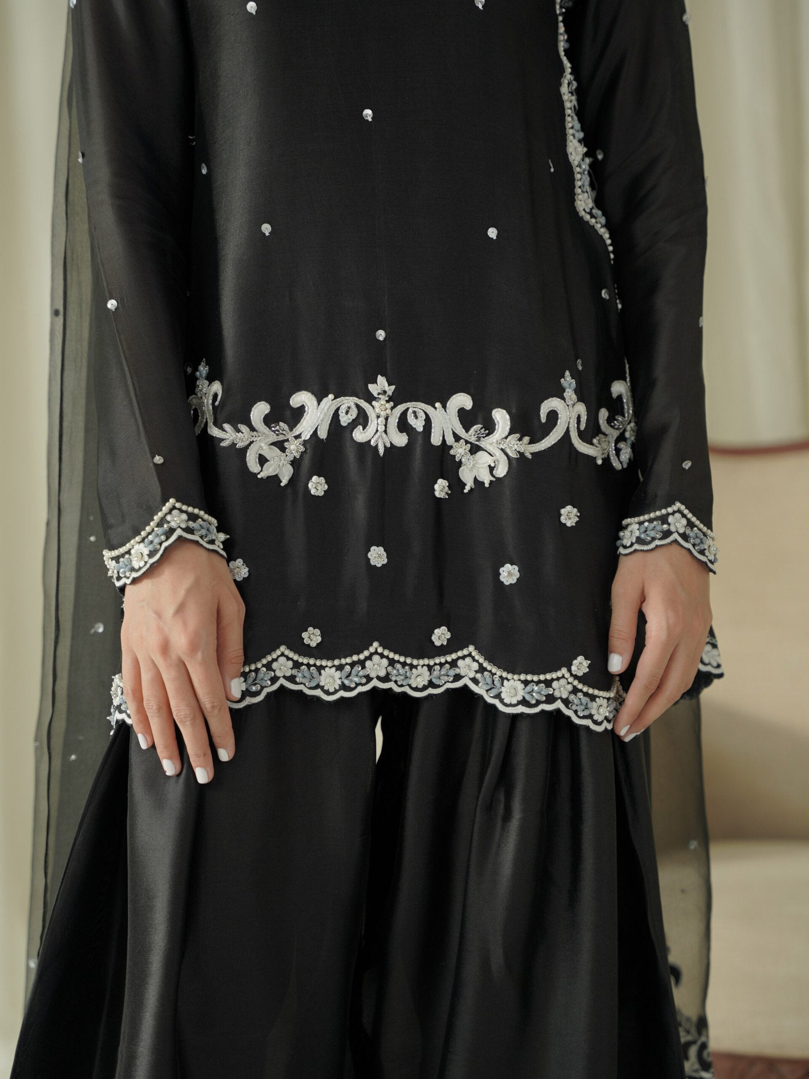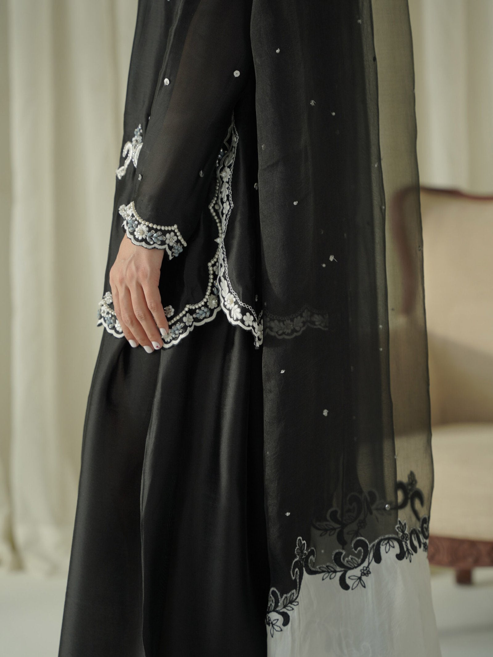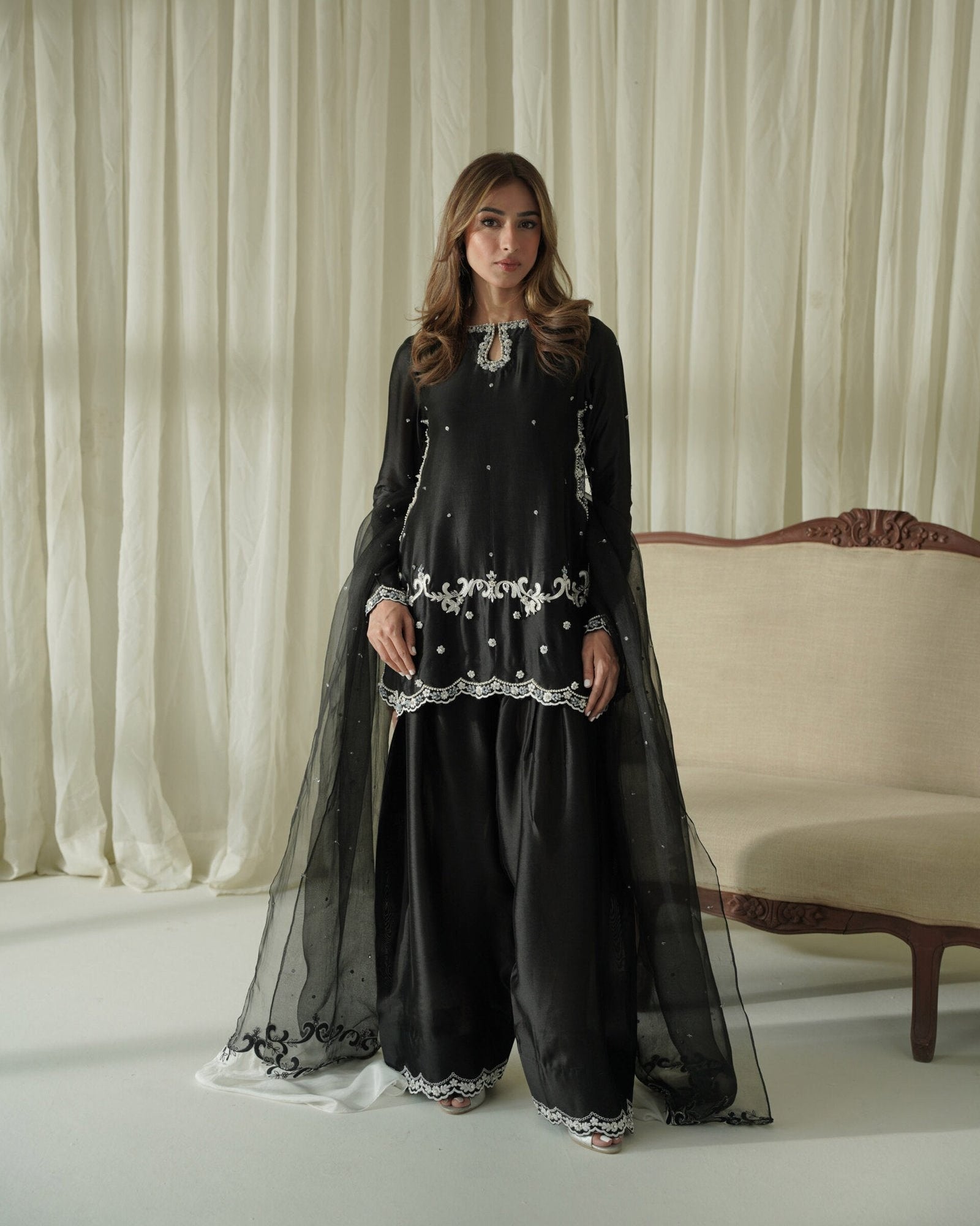 Dupatta: Organza with All-Side Embroidered.
